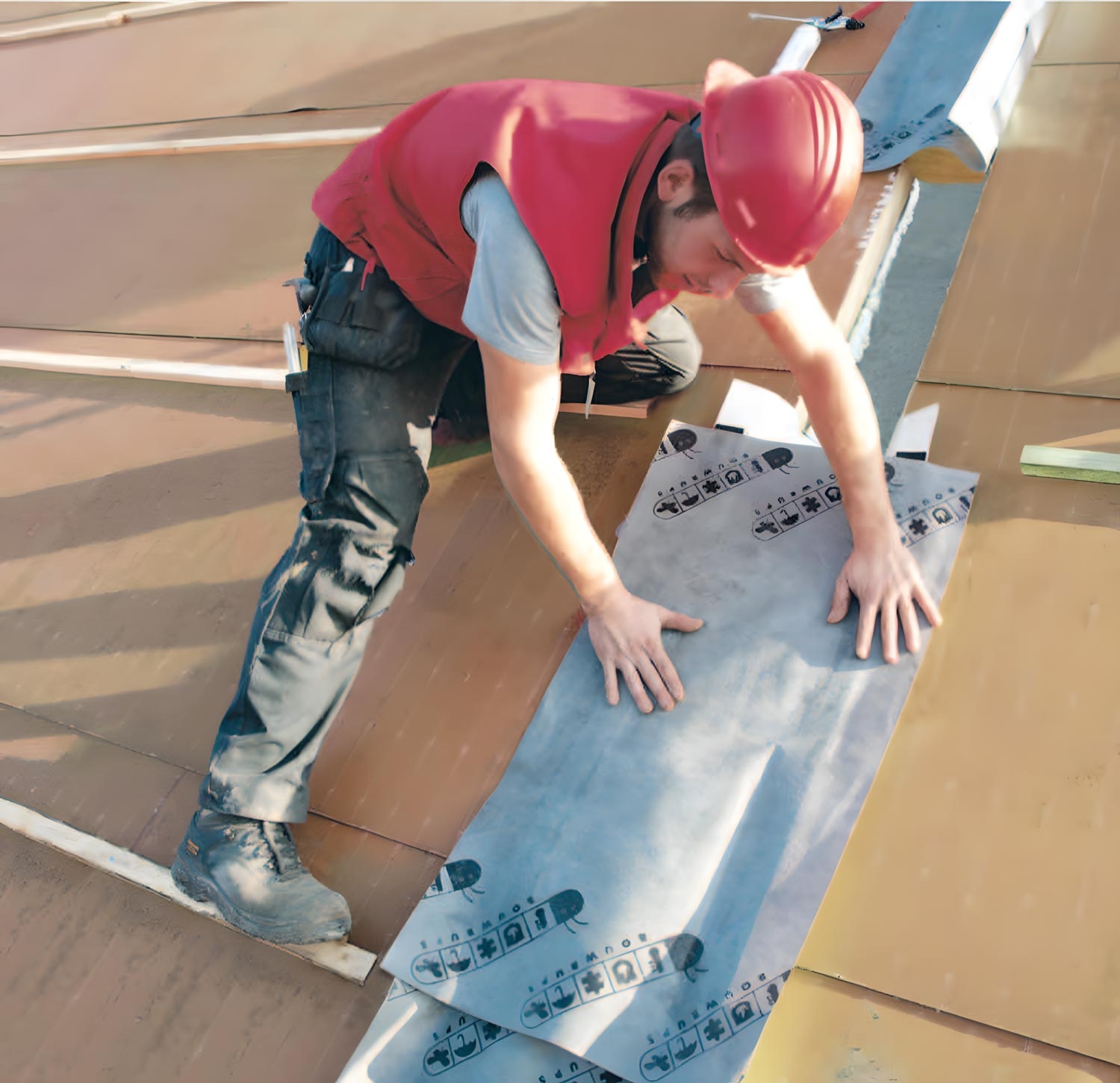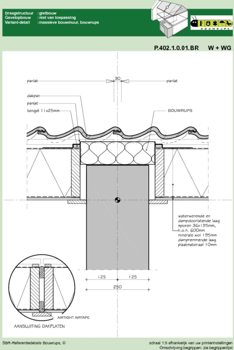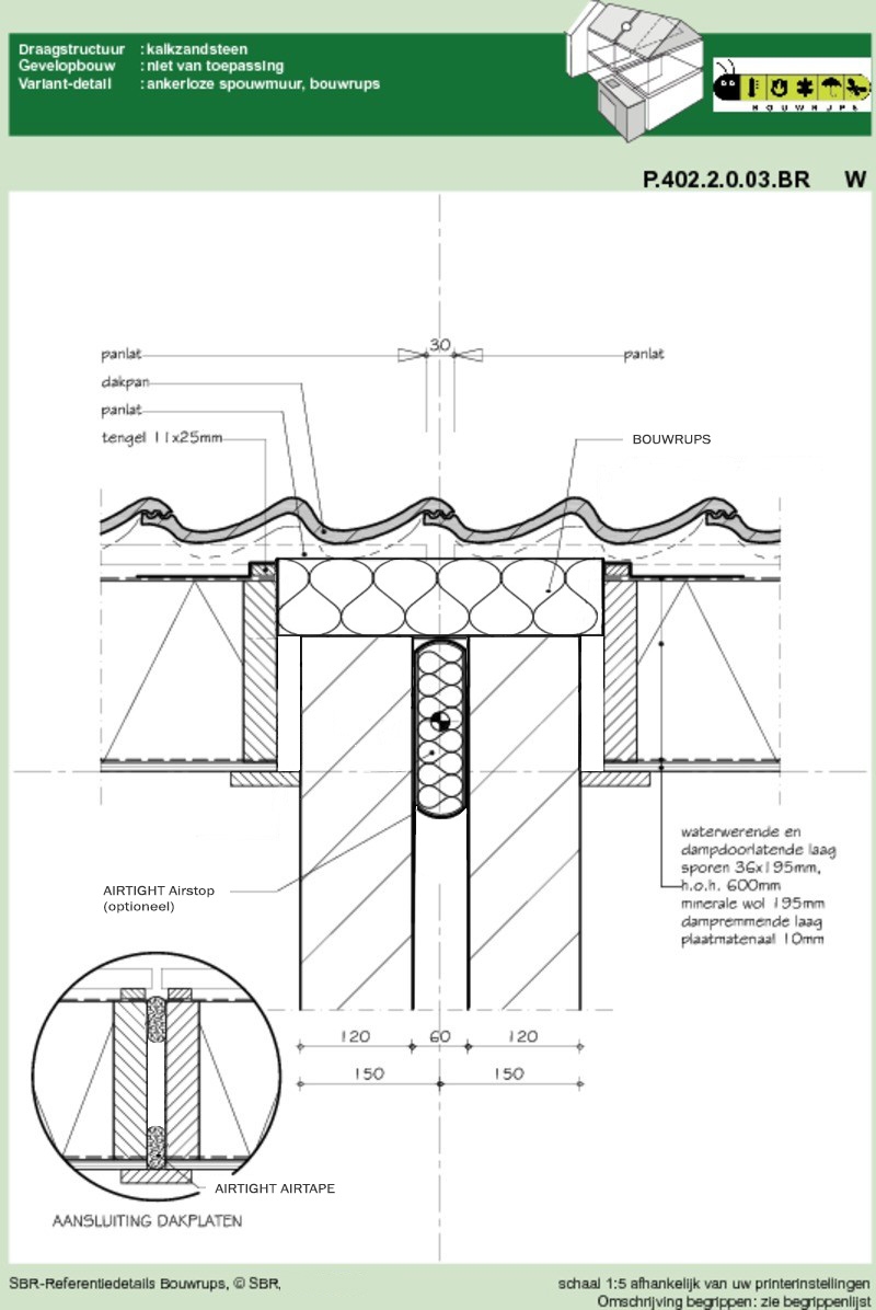 De Bouwrups is een prefab steenwol aansluitprofiel voor het brandwerend, luchtdicht en geluidsisolerend afsluiten van de aansluiting tussen hellende dakelementen en een woningscheidende wand.