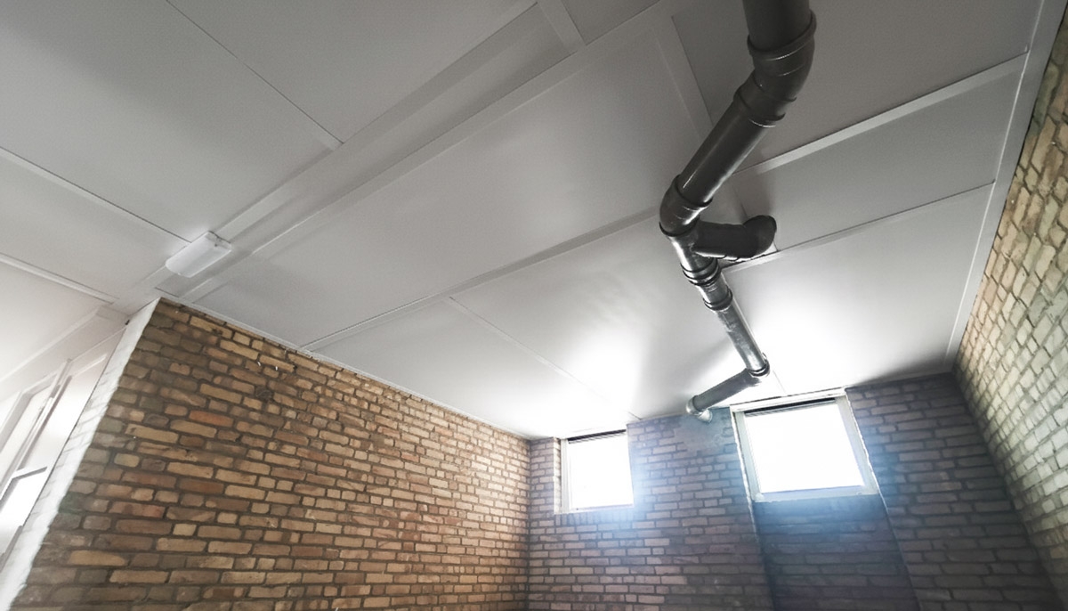 De aannemer koos voor een combinatie van PIR-isolatie met een PVC-afwerking. Deze oplossing bleek niet alleen sneller te verwerken dan PIR + gips, maar bood ook veel meer gebruiksgemak bij het op maat maken van kleine stukken. Dankzij de strakke afwerking is het systeem ideaal in situaties met bestaand leidingwerk.